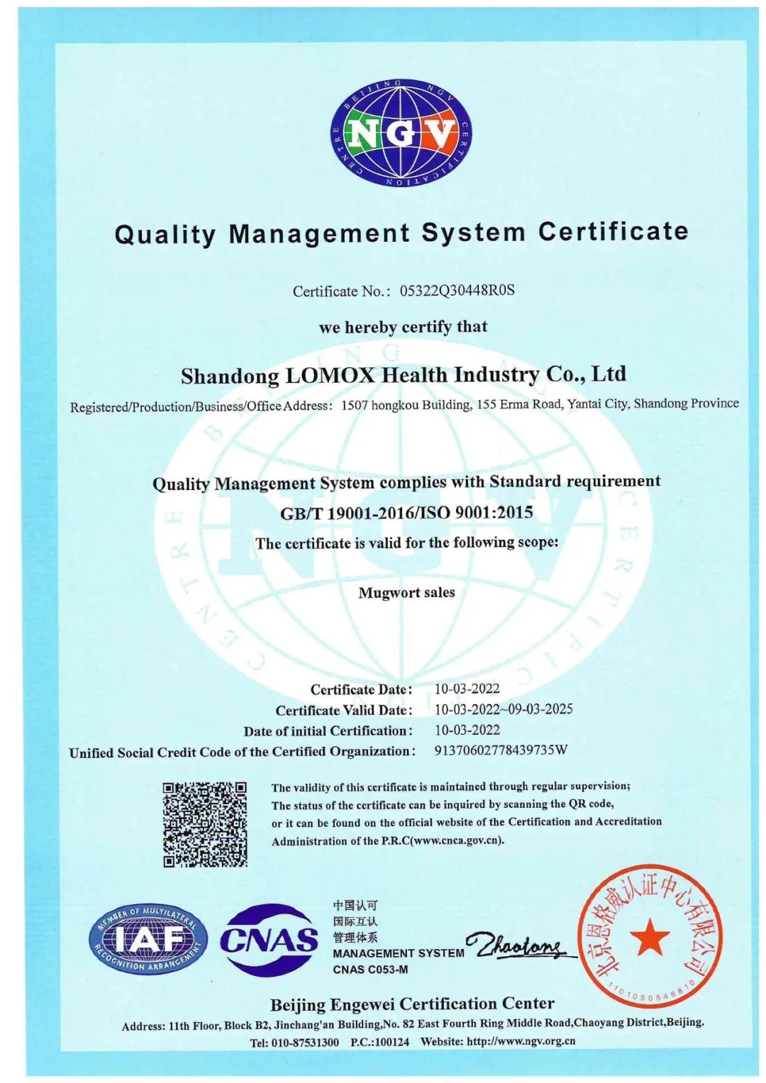 山東愛灸堂健康產(chǎn)業(yè)股份有限公司(以下簡稱“愛灸堂”)順利通過了質量認證中心的專項審核,正式獲得ISO 9001:2015質量管理體系認證證書,這標志愛灸堂在程序化和標準化方面取得了新的進展。